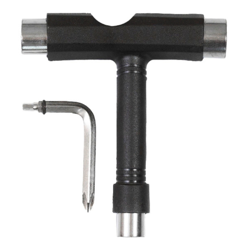 Chave em formato de T com três bocas sextavadas de medidas 10mm, 13mm e 14mm.